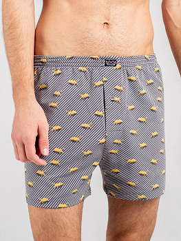 Трусы шорты мужские Boxer с LYCRA® из полотна с набивным рисунком. Модель отличается особым комфортом благодаря тому, что рисунок вывязывается из разноцветной пряжи. Это делает белье мягким, а полоски не теряют цвет после многократных стирок. Анатомическая посадка и прекрасная формоустойчивость за счет добавления эластановых нитей – отличительные особенности этой модели. Полотно на основе хлопка позволяет коже «дышать» и регулирует микроклимат, поэтому в нём приятно находиться. Немецкий бельевой стандарт в современной интерпретации!